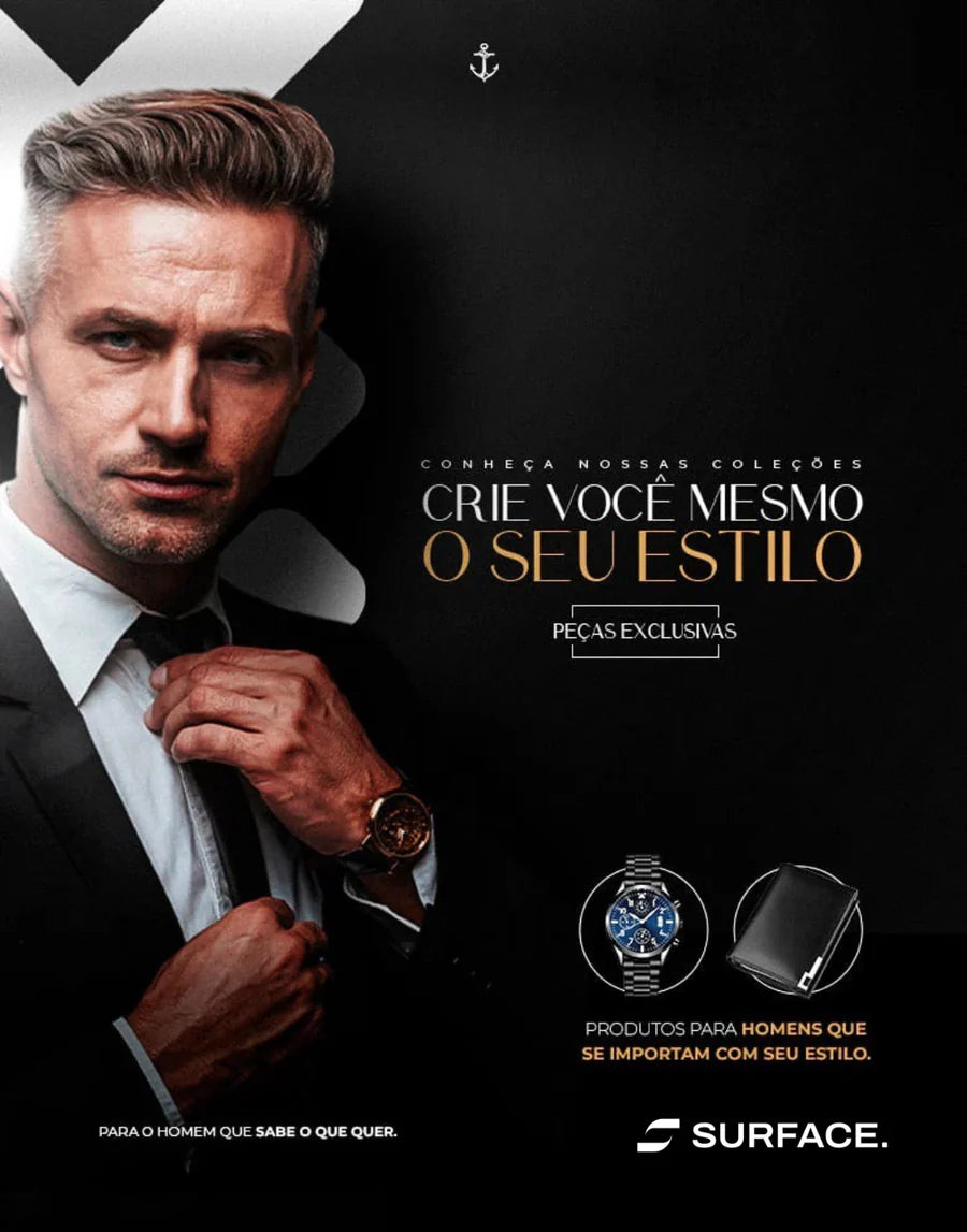Na Surface, unimos estilo, qualidade e minimalismo para o homem moderno. Trabalhamos com peças selecionadas para entregar elegância, conforto e confiança no seu dia a dia.